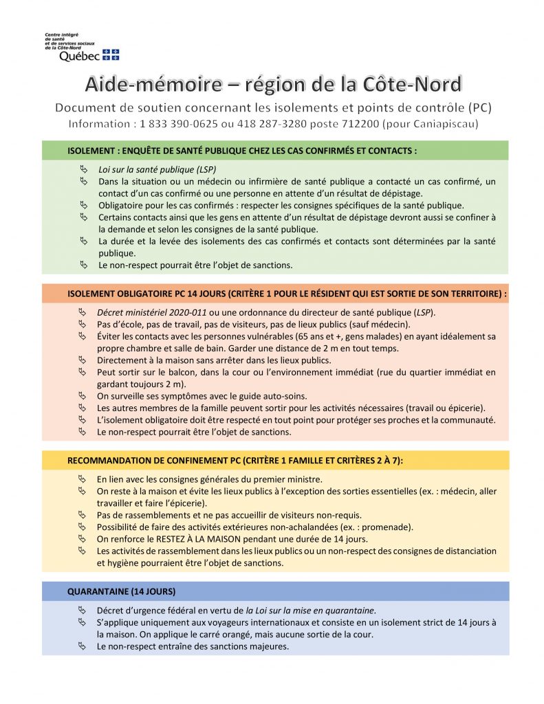 AIDE-MÉMOIRE | Points de contrôles Covid-19